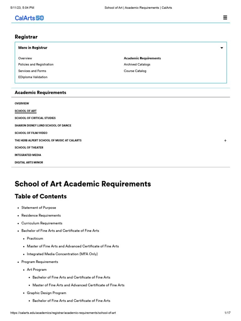School of Art Academic Requirements CalArts 1 PDF Mentorship Bachelor's Degree
